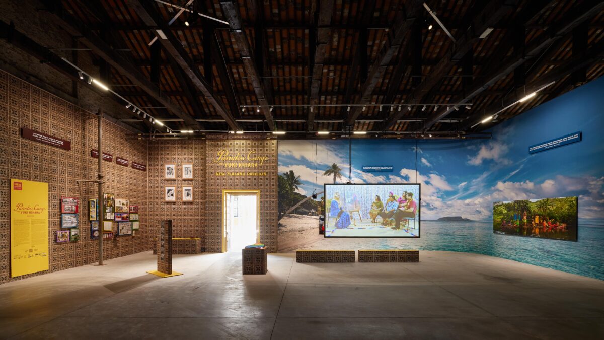 Yuki Kihara, Paradise Camp, curated by Natalie King. Installation view, Biennale Arte 2022. Photo: Luke Walker